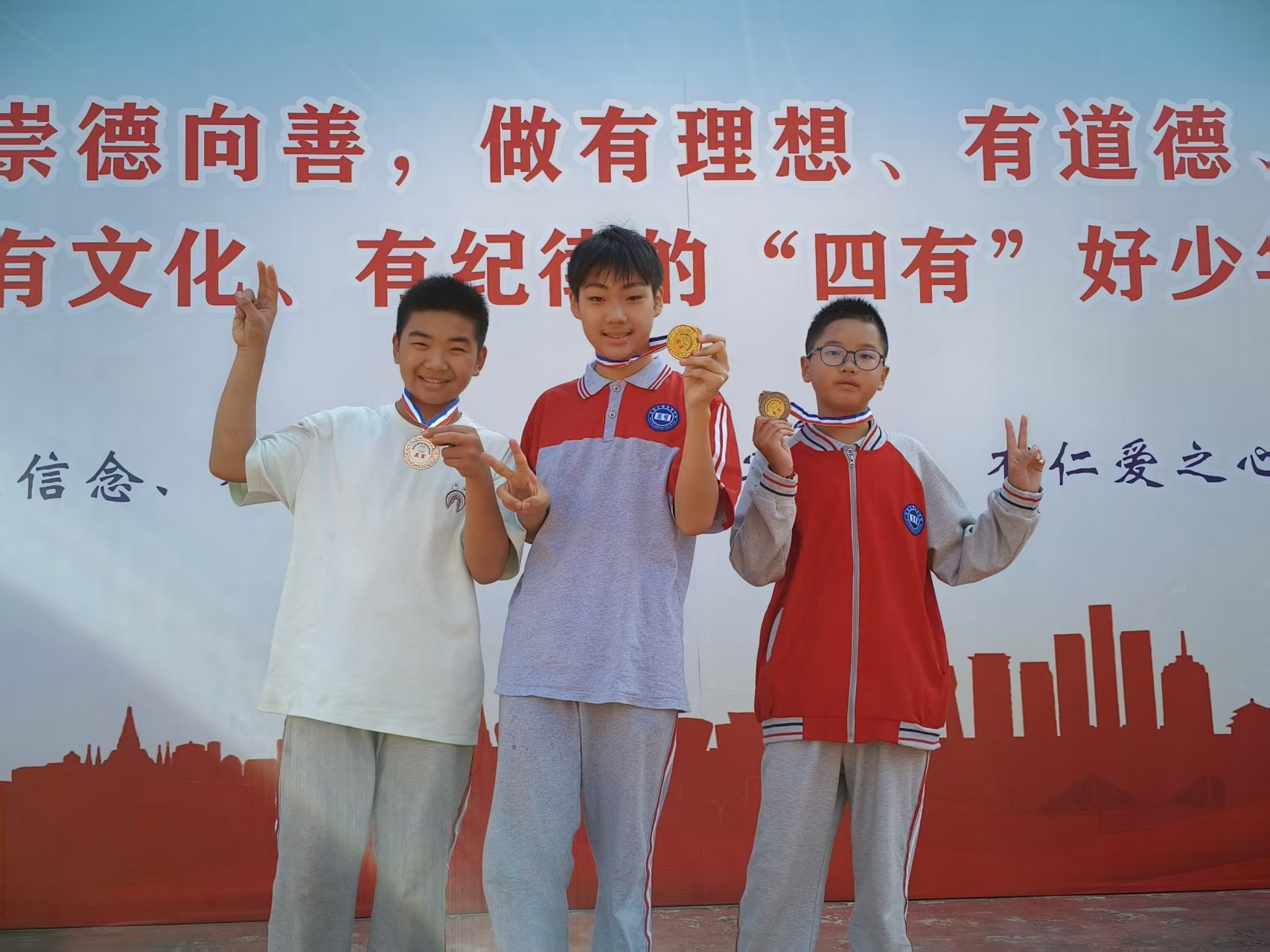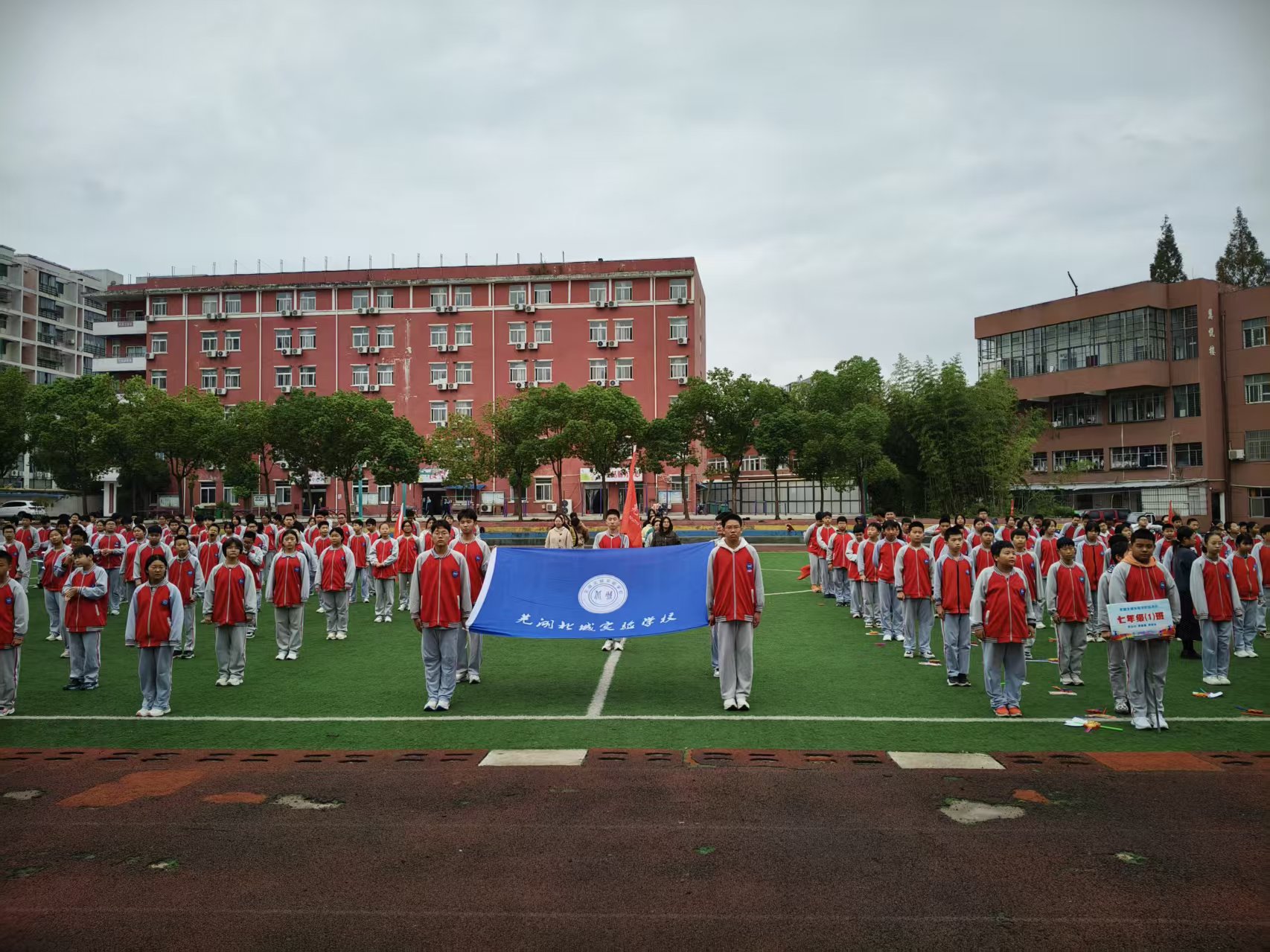運動會開幕式上,701班方陣邁著整齊有力的步伐依次入場,瞬間點燃了全場的熱情。同學們身著統一的服裝,手持精心設計的道具,以創意隊形演繹著青春的活力。“七一班,不一般,團結拼搏勇爭先!” 經過幾天的激烈角逐,運動會在夕陽的余暉中落下帷幕。對于七年級的同學們來說,這是一次難得的成長歷練:他們在競爭中學會了堅持,在合作中懂得了團結,在挫折中收獲了勇氣。